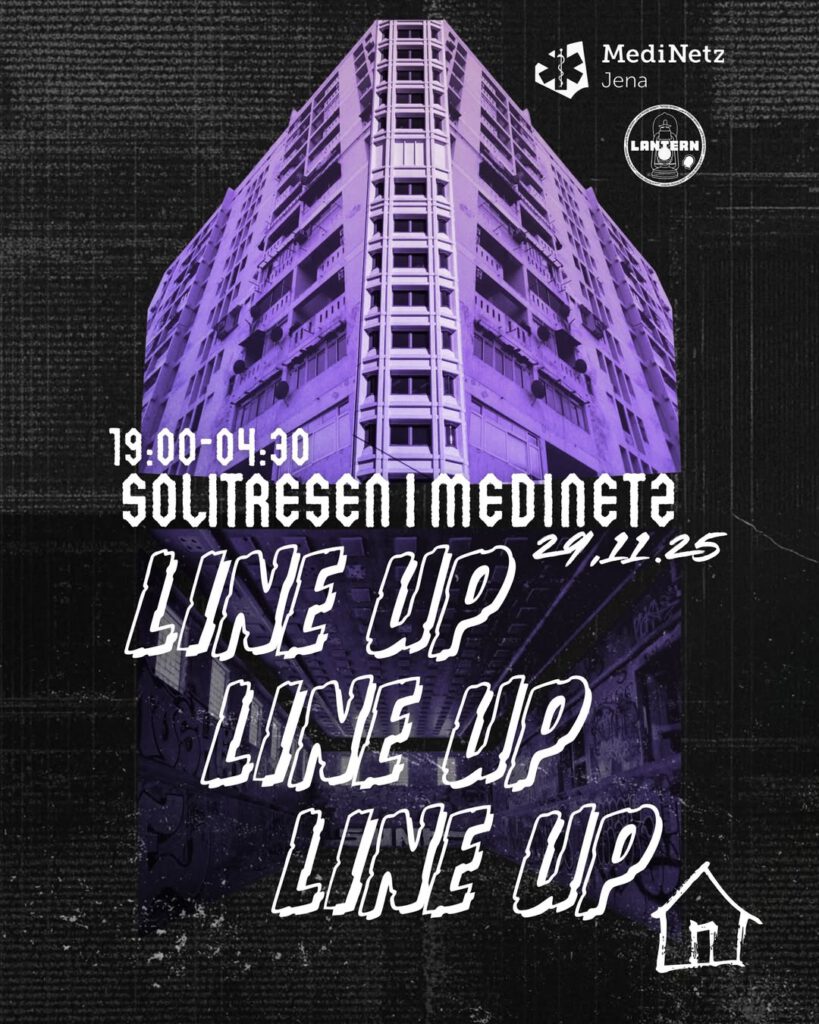 Am 29.10.2025 findet von 19:00 bis 04:00 (am 30.) eine Solidaritätsparty für MediNetz statt. MediNetz ist eine Organisation mit der wir schon länger in Kontakt stehen und welche bei Aktionen in Suhl immer an unserer Seite steht. Die Solidaritätsparty wird von @solitresen_jena organisiert und umfasst ein cooles und umfangreiches Programm.